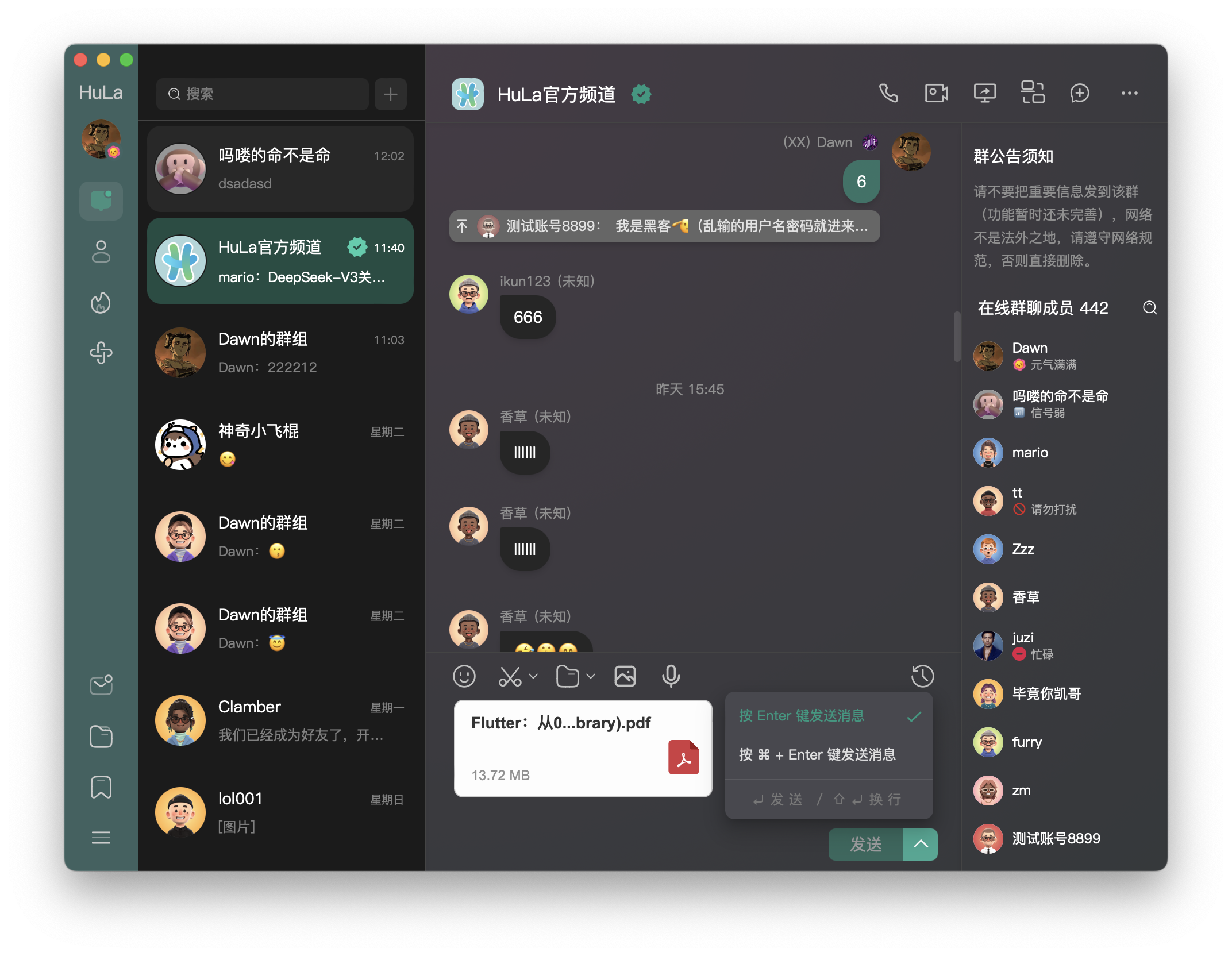 HuLa 是一款基于 Tauri、Vite 7、Vue 3 和 TypeScript 构建的即时通讯系统。它利用了 Tauri 的跨平台能力和 Vue 3 的响应式设计,结合了 TypeScript 的类型安全特性和 Vite 7 的快速构建,为用户提供了一个高效、安全和易用的通讯解决方案。
